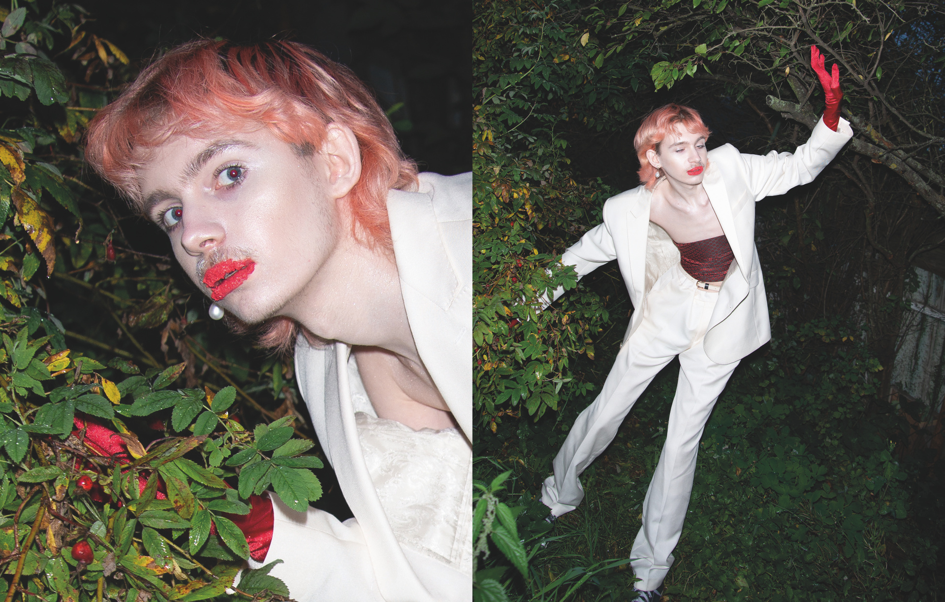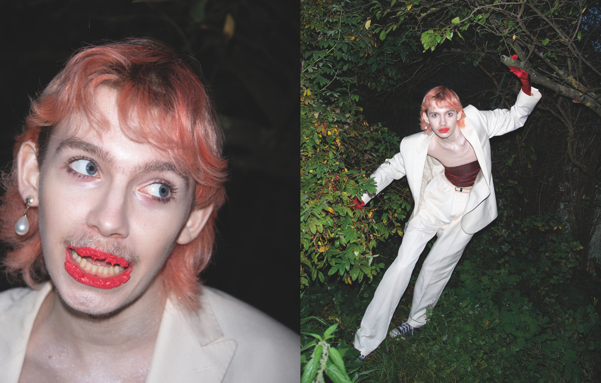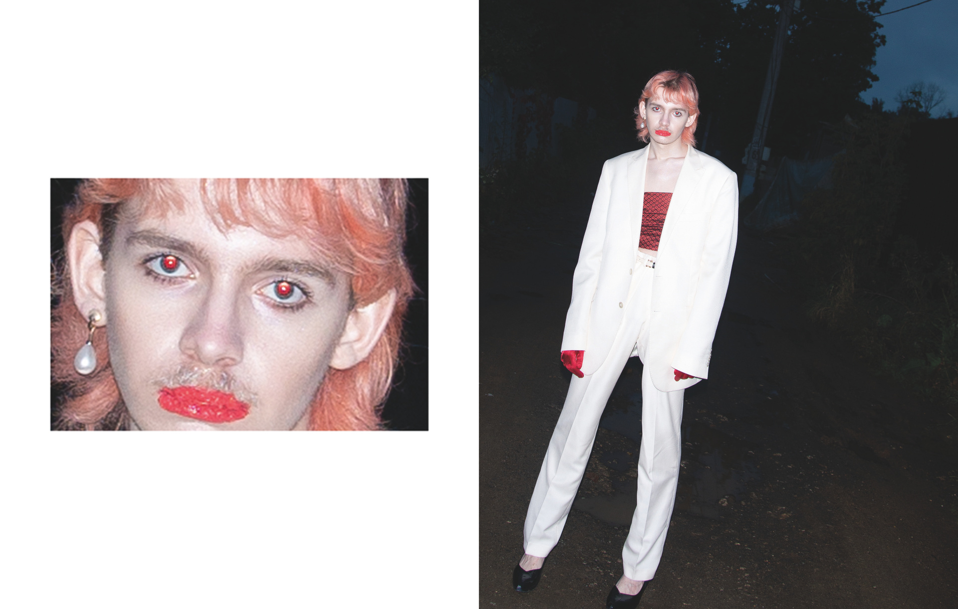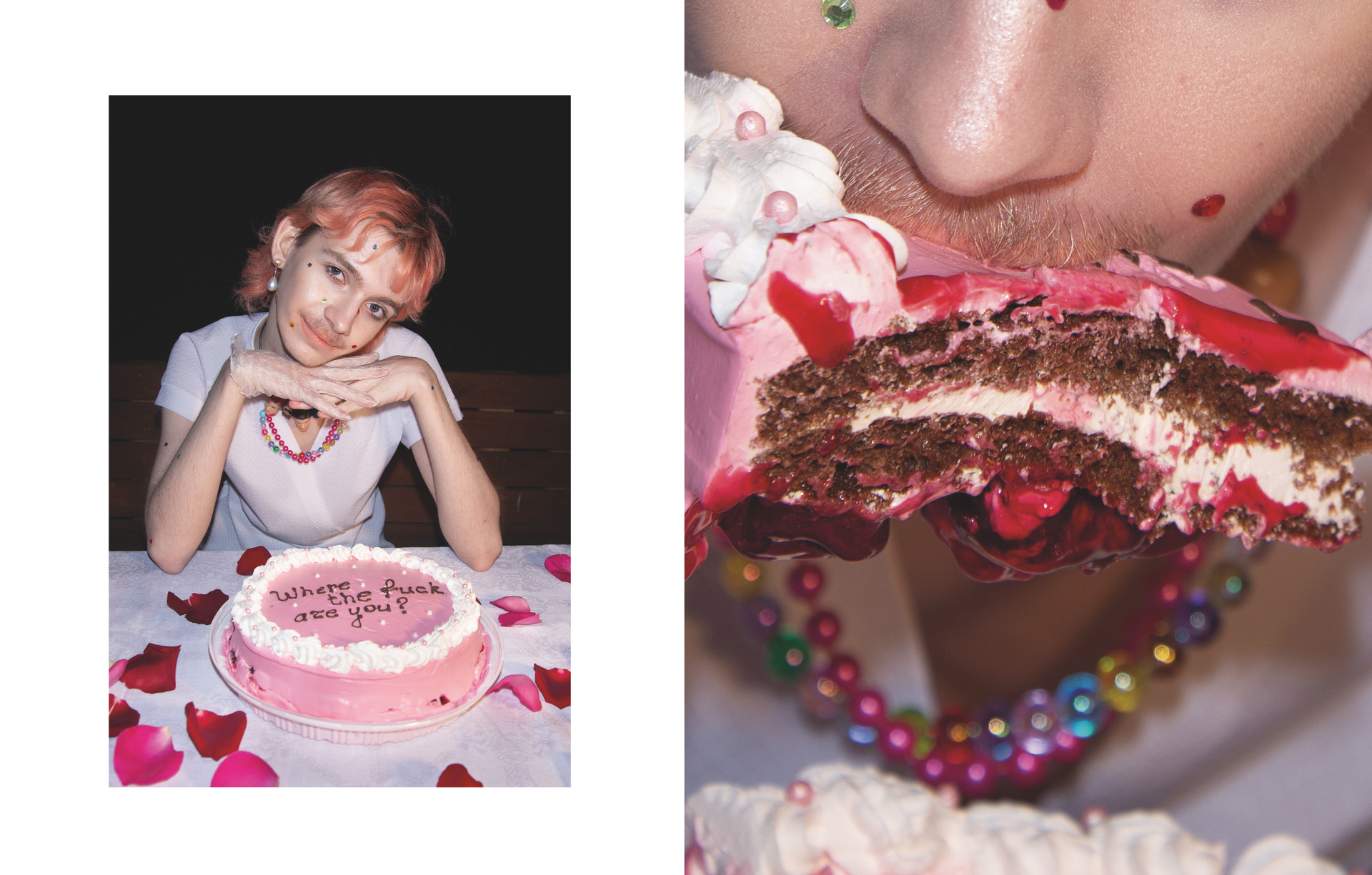 Невеста — небинарная персона и активистка — символизирует гендерную свободу в самоопределении и переоценку восприятия личности у моего поколения. В серии также есть некоторые атрибуты, связанные с моей семьей и происхождением — традиционные блюда, которые я с детства вижу на всех армянских застольях, и голуби из настоящей частной голубятни моего отца. Скрещивание таких разных частей моей жизни в одной съёмке — мой способ примирения с личным опытом и желание показать, что быть непохожим на свою семью в выборе ценностей, но при этом находить точки соприкосновения и адаптировать вековые традиции под себя — возможно и очень даже весело!